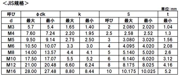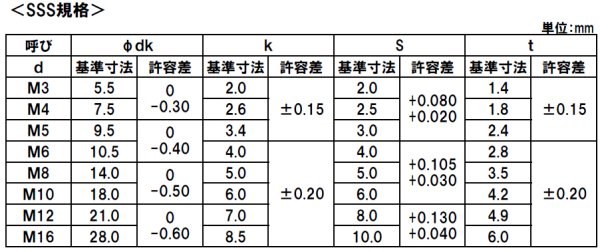 セムス座金組込み規格表