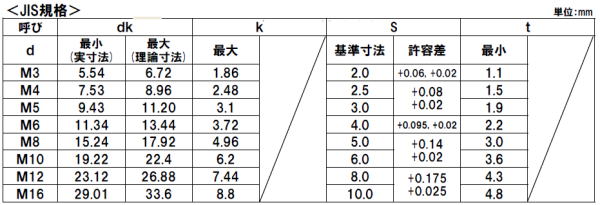ねじのデータ集 > 皿CAPの頭部規格