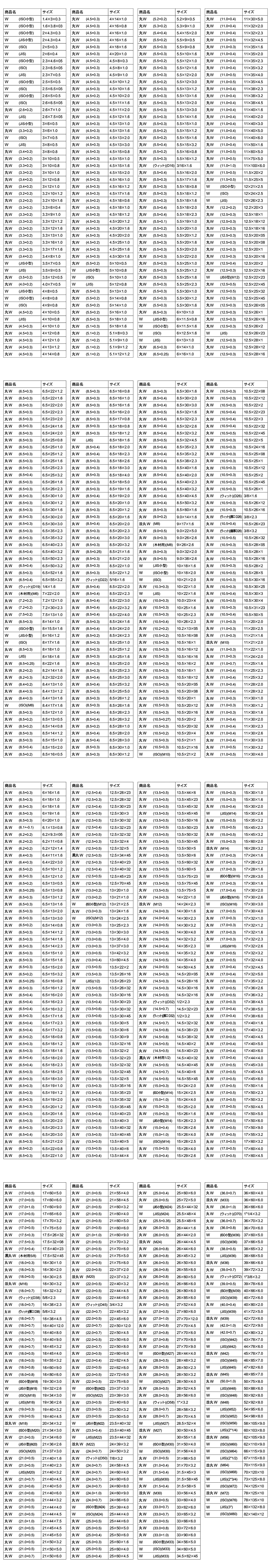 ねじのデータ集 > 鉄座金 規格サイズ一覧表
