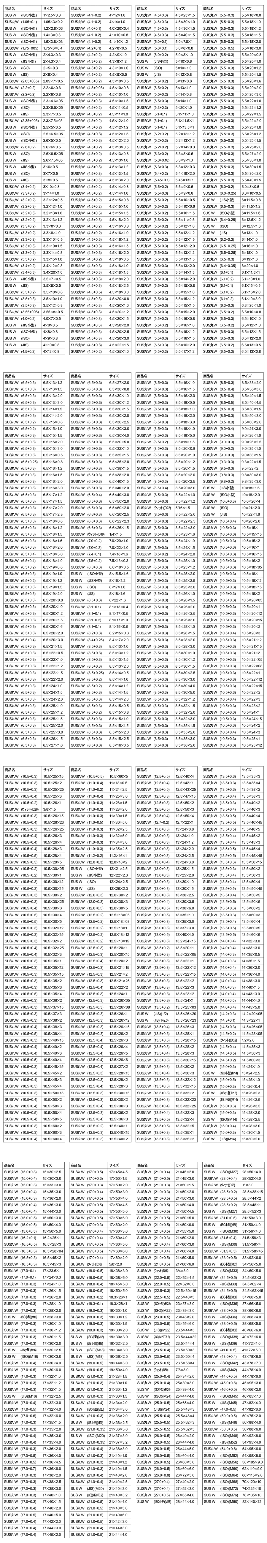 ねじのデータ集 > ステンレス座金 規格サイズ一覧表