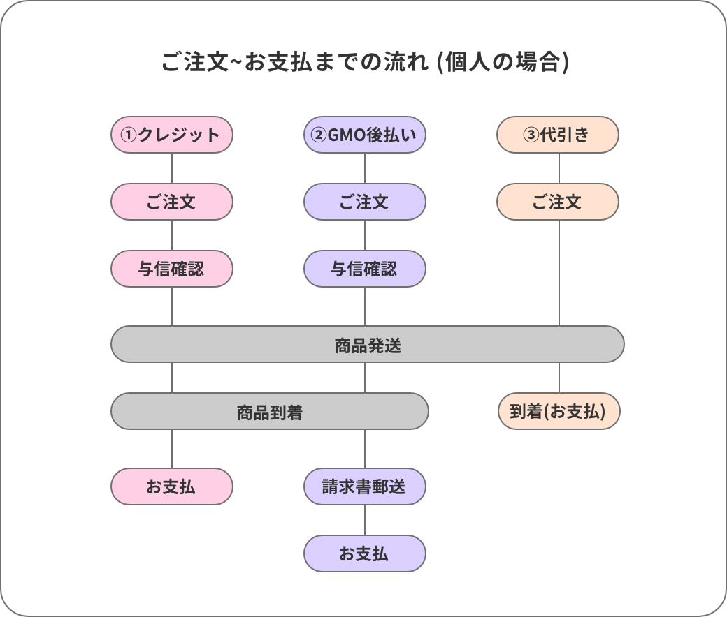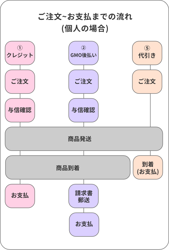 - (4)商品到着/請求書到着(商品は弊社、請求書はGMOペイメントサービス株式会社から送られます)
