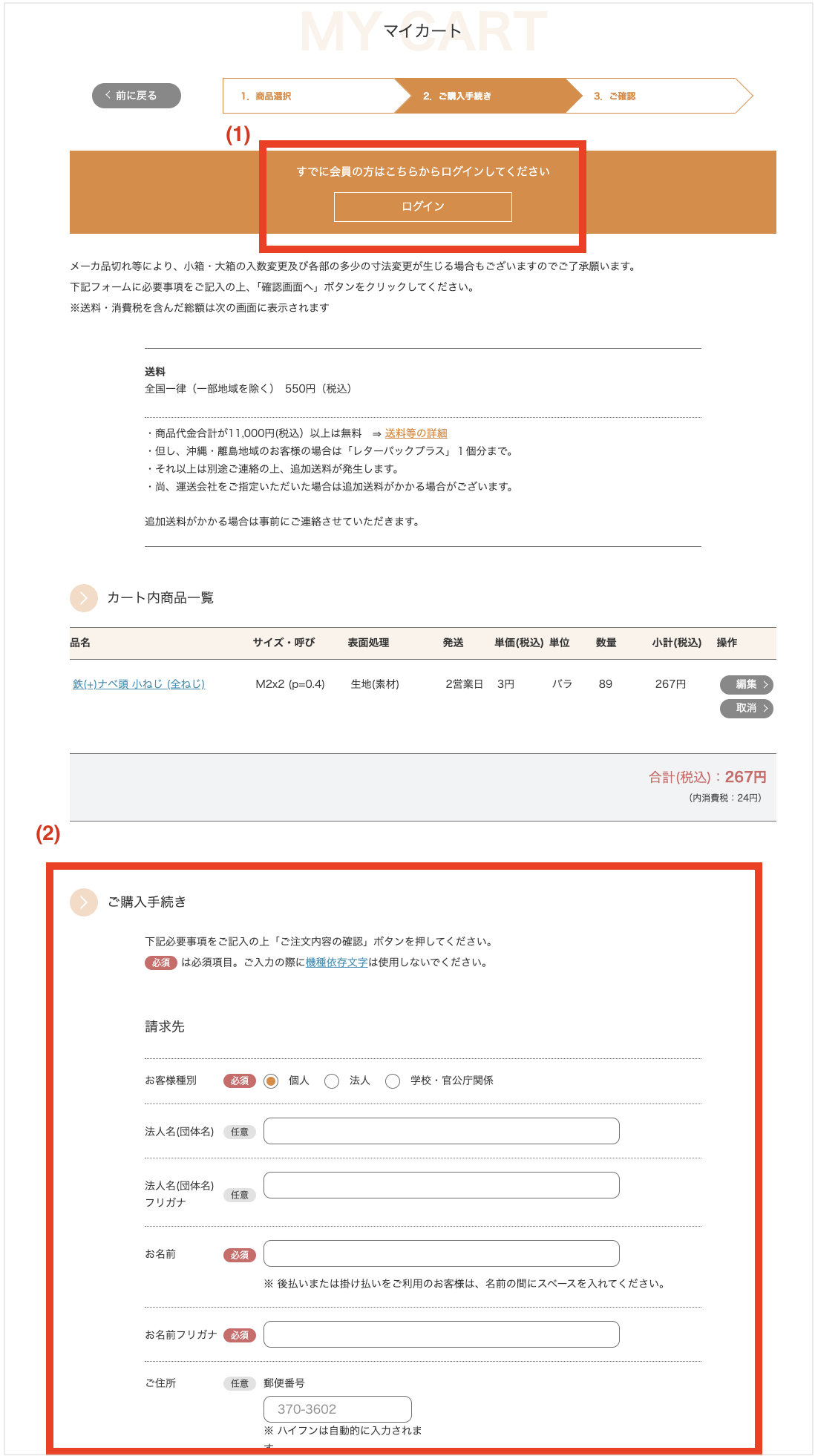 (1) すでに会員の場合はログインした後にご購入手続を進めてください。