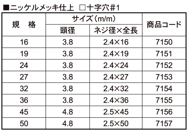 | サイズ | 表面処理 | 入数(単価:税込) ※最小販売条件:1小箱・袋〜 | 在庫