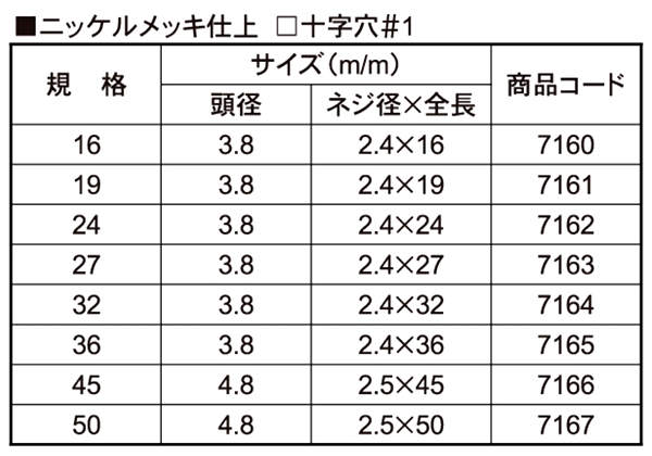 | サイズ | 表面処理 | 入数(単価:税込) ※最小販売条件:1小箱・袋〜 | 在庫