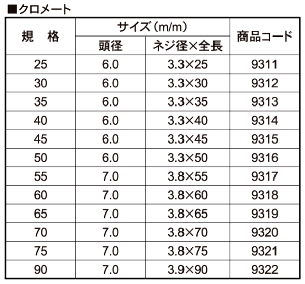| サイズ | 表面処理 | 入数(単価:税込) ※最小販売条件:1小箱・袋〜 | 在庫