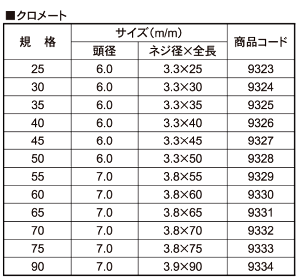 | サイズ | 表面処理 | 入数(単価:税込) ※最小販売条件:1小箱・袋〜 | 在庫