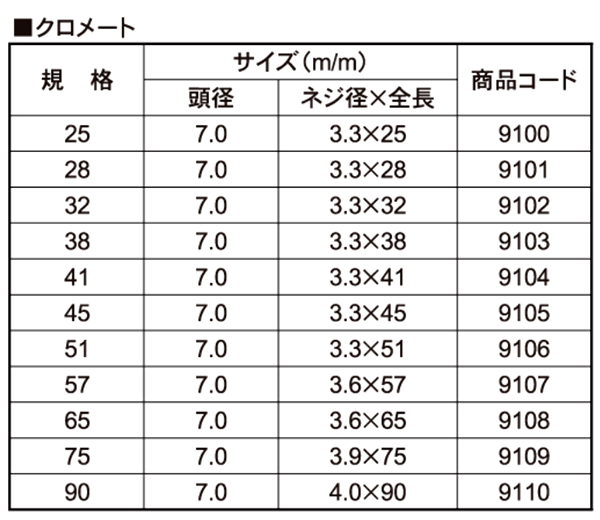 | サイズ | 表面処理 | 入数(単価:税込) ※最小販売条件:1小箱・袋〜 | 在庫